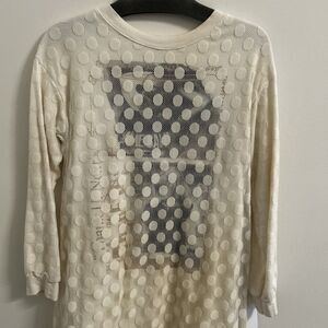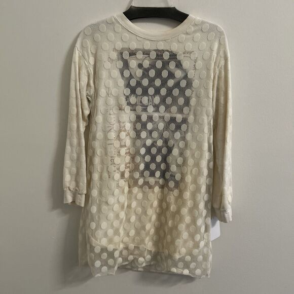 NWT MYASTREET Ivory Polka Dot Mesh Tunic Top Long Sleeve Stretch One Size
