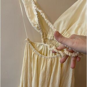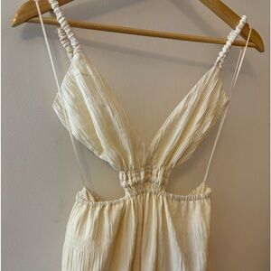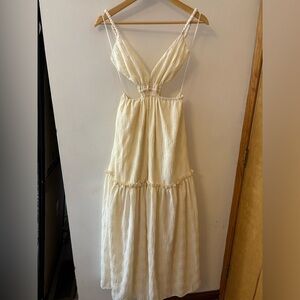 NWT beige tan Mable ruffle tiered maxi boho cutout dress. Color is NOT same as stock photo. Dress is a gorgeous, ethereal, boho wedding, rustic boho, cottagecore, feminine, flirty style. Size M. (I)