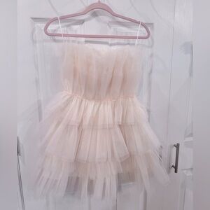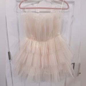 NWT Mable by Anthropologie 100% Tulle Strapless Dress SIZE S. Ivory layers of tulle give this a beautiful ballerina effect. Elastic waist. Rim around the top to grip the skin.
