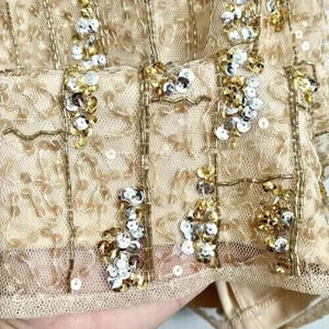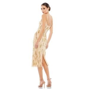 NWT Mac Duggal 10770 Beaded Square Neck Midi Dress Sz 4 Nude Gold