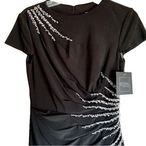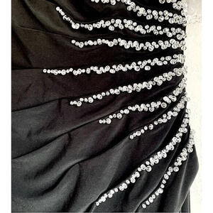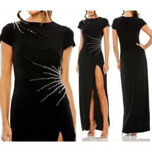 NWT Mac Duggal 11670 Slit Gown with Side Beaded Sequins Black Sz 8 $398