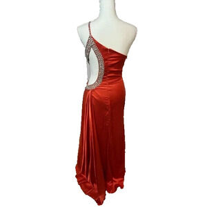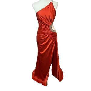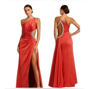NWT | Mac Duggal 11692 One Shoulder Jewel Embellished Side Cut Out Gown Red 8