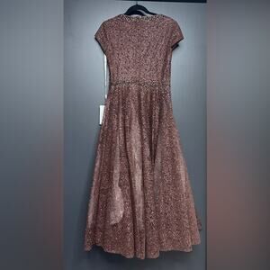 NWT Mac Duggal 20371 Embellished Cap Sleeve A Line Dress 6 Chocolate