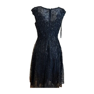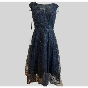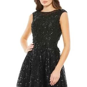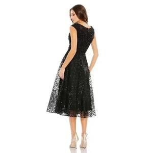 NWT Mac Duggal 20398 Sequin Cap Sleeve Fit & Flare Midi Dress Black
