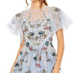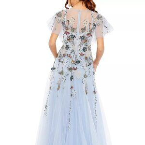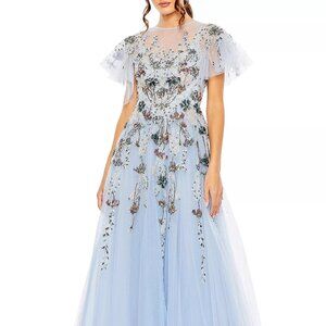 NWT Mac Duggal 20510 Periwinkle Blue Embellished Tulle High Neck Maxi Gown $998