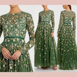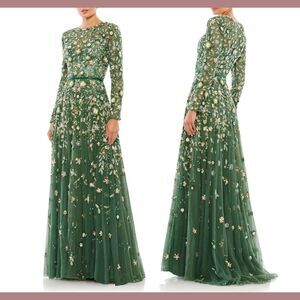 NWT Mac Duggal [ 22 ] 5533 Embellished High Neck Long Sleeve A Line Gown Sage