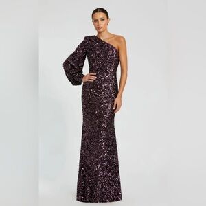 NWT | Mac Duggal 26717 Aubergine Purple Sequined One Shoulder Sleeve Gown Size 6