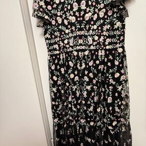 NWT | Mac Duggal 35104 Black Embroidered V Neck Cap Sleeve Midi Dress Size 16