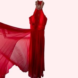 ❤️ NWT Flash by Mac Duggal Red Crystal Halter Neck Chiffon Gown Dress