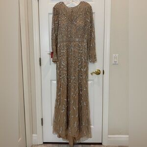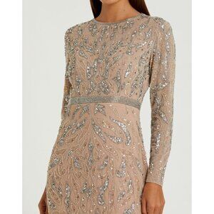 NWT Mac Duggal 5124 Beige Long Sleeve Beaded Evening Gown Size 12.