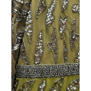 NWT Mac Duggal Women's Olive Green Beaded Long Sleeve Belt Evening Gown Size 20