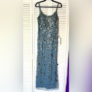 NWT Mac Duggal 5477 Floral Embellished Scoop Neck Gown in Slate Grey 10