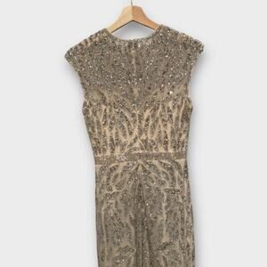 NWT Mac Duggal 5532 Embellished Illusion Cap Sleeve Column Gown Size 4