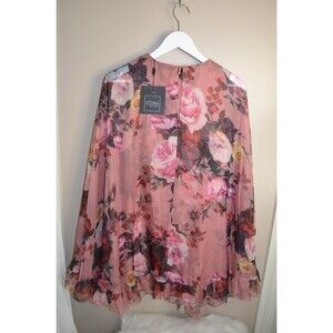 NWT Mac Duggal 55404 Rose Floral Print Ruffle Hem Cape Mini Dress Chiffon Size 4
