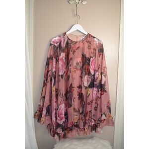 This cape-like confection is a dream come true. The whimsical dress is crafted from billowy floral-print chiffon and boasts a high-fashion look with wing sleeves, pretty ruffle trim and a leggy babydoll length. Glamorous and unique, you’ll be the envy of your friends in this showstopper.