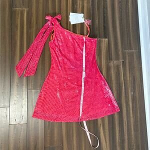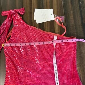 NWT Mac Duggal 5548 Sequin After Prom Dress Hot Pink Shoulder Mini Fitted Barbie