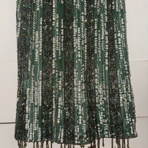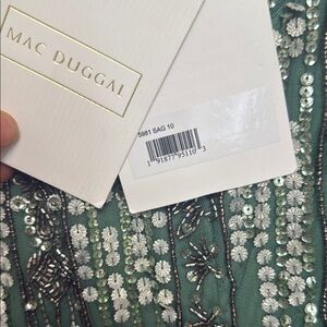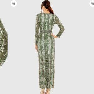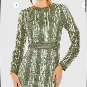 NWT | Mac Duggal 5981 Sage Long Sleeve Crystal Fringe Column Gown Size 10