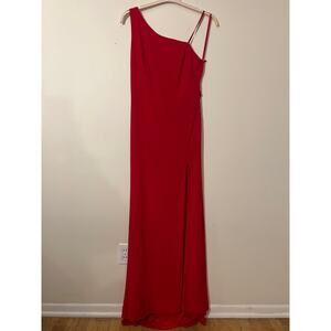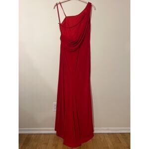NWT Mac Duggal 6 Red Jersey One Shoulder Draped Back Slit Cocktail Gown strappy