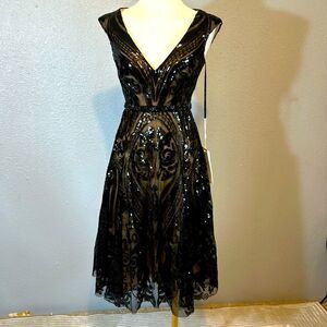 NWT Mac Duggal 67514 sequined fit and flare midi lace dress size 2