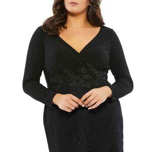 NWT Mac Duggal 67896‎ Plus Wrap Over Long Sleeve Lace Trumpet Gown SZ 30W 67896