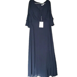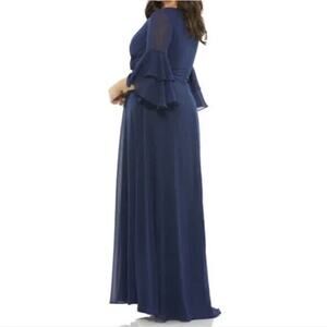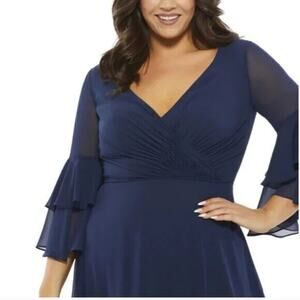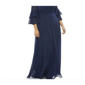 NWT Mac Duggal 67913 Long Sleeve V Neck Chiffon A-Line Gown Plus 22W Navy $398
