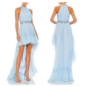 NWT Mac Duggal 68029 High Neck High Low Dress $398 Ice Blue