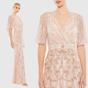 NWT Mac Duggal 9064 Pink Embellished Cap Sleeve Faux Wrap Trumpet Gown Size 10.