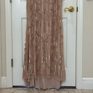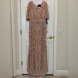 NWT Mac Duggal 9064 Pink Embellished Cap Sleeve Faux Wrap Trumpet Gown Size 10.