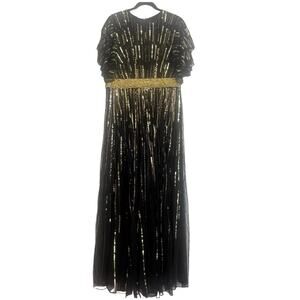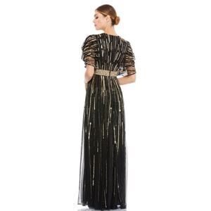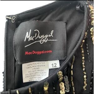NWT Mac Duggal 93582D Layered Sleeve Embellished Dress Black & Gold Sz 12 *READ*