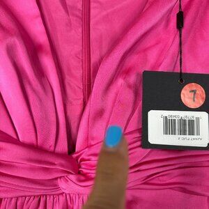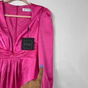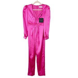 NWT Mac Duggal A2647 Plunging V Neckline Long Sleeve Jumpsuit Fucshia 2 #7984