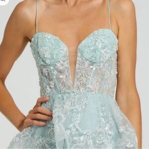 NWT Mac Duggal Aqua Tiered Lace ballgown prom Dress size 4