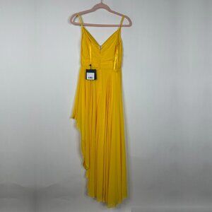NWT Mac Duggal Asymmetrical Hem Chiffon Maxi Dress Marigold 2 #A0547