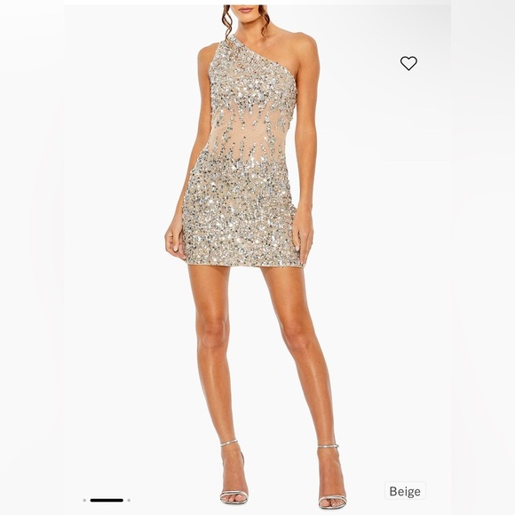 NWT! Mac Duggal Asymmetrical Sequin Beige Mini Dress size 0…