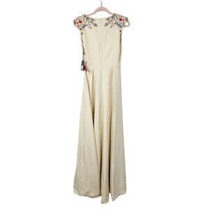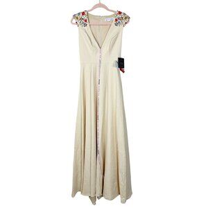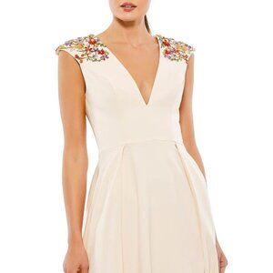 NWT Mac Duggal Beaded Cap Sleeve V Neck A Line Gown Vanilla 0