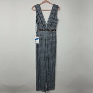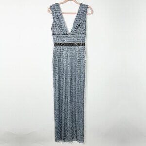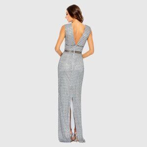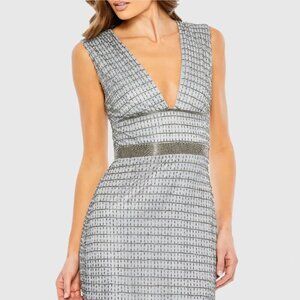 NWT Mac Duggal Beaded Cap Sleeve V Neck Column Gown Silver 4 #9871