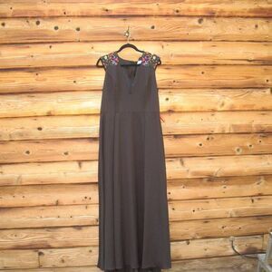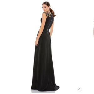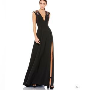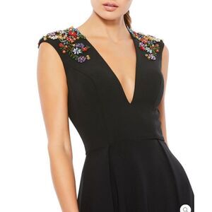 NWT Mac Duggal Beaded Cap Sleeve V Neck Gown Dress Black 14
