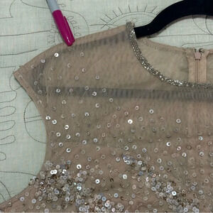 I have included 2 pictures where beads have come off: seed bead at right shoulder and sequins at left arm. It is not noticeable unlesss you inspect the dress, but there is a packet of replacement beads that comes with the dress if you would like to replace.