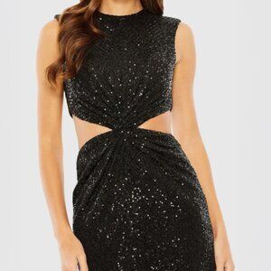 NWT Mac Duggal Black Sequin Twist Cut Out Open Back Gown