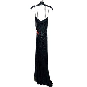 NWT Mac Duggal Black Stretch Sequin Lace Up Back Evening Gown Black 12