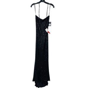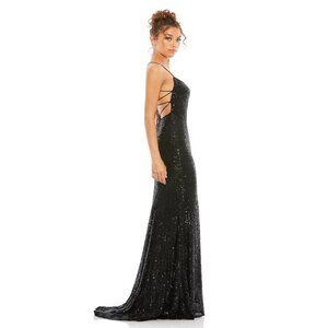 NWT Mac Duggal Black Stretch Sequin Lace Up Back Evening Gown Black 12 #9552