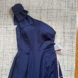 NWT Mac Duggal Bow One Shoulder A Line Gown Midnight 26989 Size 6