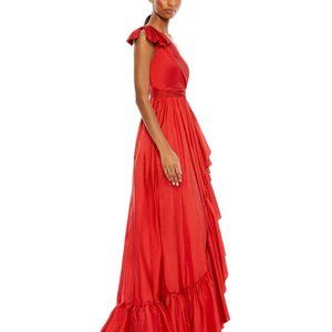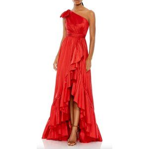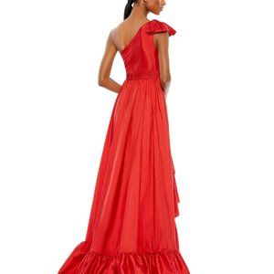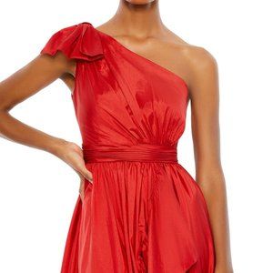 NWT Mac Duggal Bow One Shoulder Ruffle Asymmetric Hem Gown Dress 68027