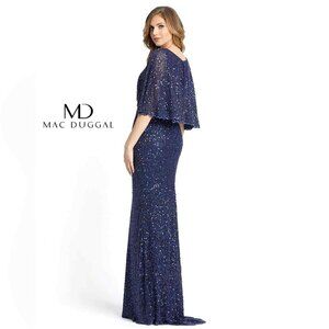 NWT Mac Duggal Cape Sleeve Sequined Beaded Waist Gown 4808 sz 12 Midnight Blue