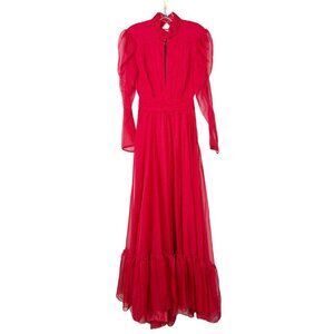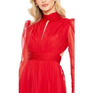 NWT Mac Duggal Chiffon High Neck Keyhole Puff Sleeve Lace Up Dress Red 12