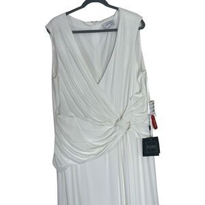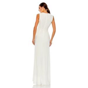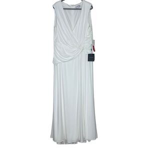 NWT Mac Duggal Draped Side Knot Jersey White Gown W/ Rhinestone Ring 20