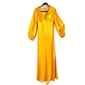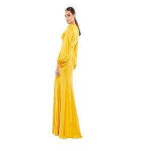 NWT Mac Duggal Dresses Mac Duggal Puffed Long Sleeve Satin Gown in Marigold Size