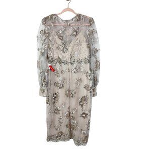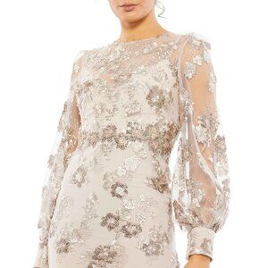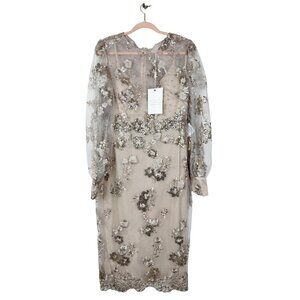NWT Mac Duggal Embellished High Neck Illusion Long Sleeve Midi Dress Mocha #8486