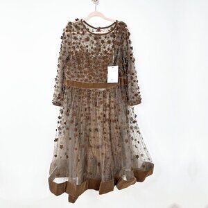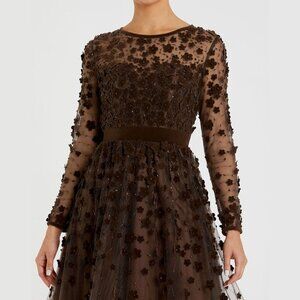 NWT Mac Duggal Embellished Illusion High Neck Fit & Flare Dress Coffee 14 #8521