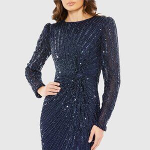 NWT Mac Duggal Embellished Puff Sleeve Side Knot Gown Navy 10 #8491