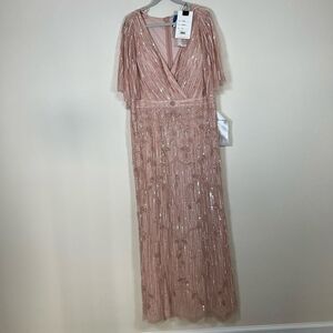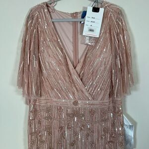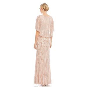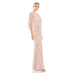 NWT Mac Duggal Embellished Cap Sleeve Faux Wrap Trumpet Blush Gown 16